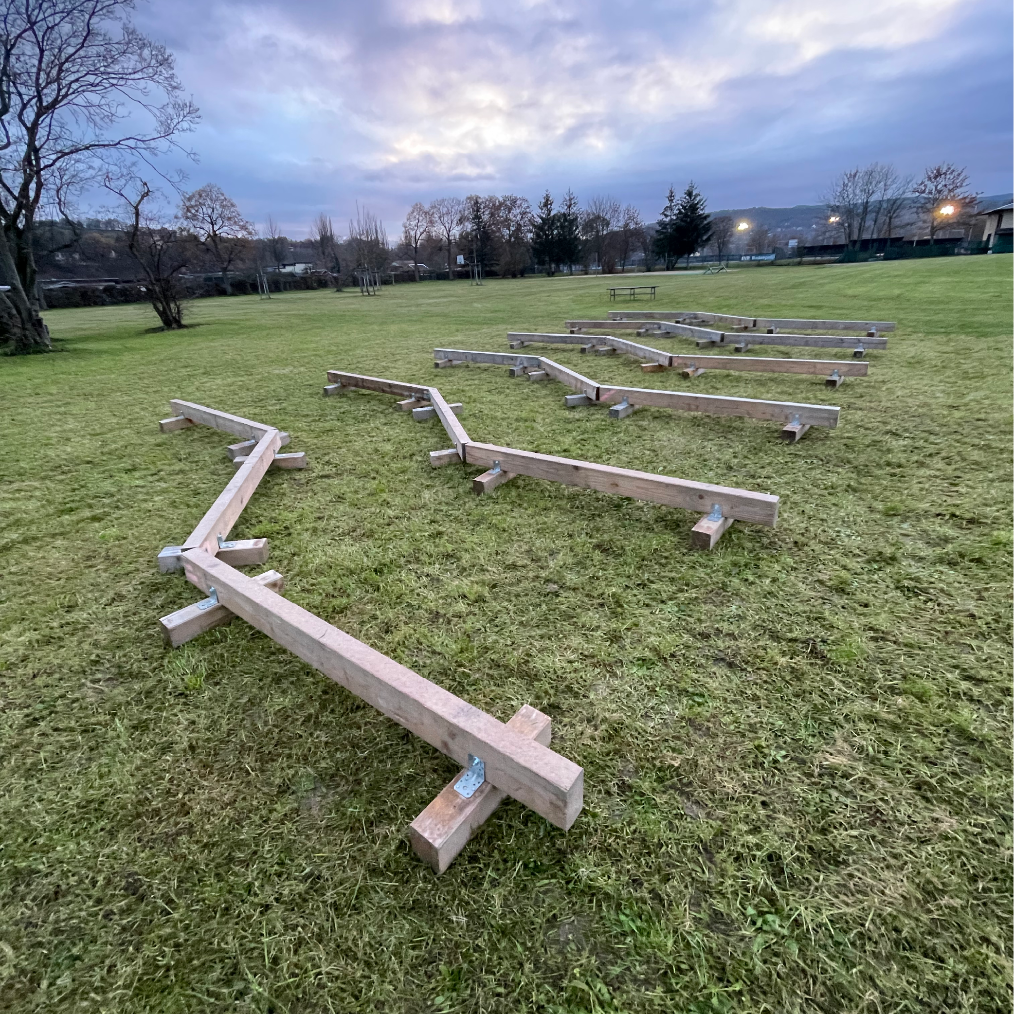 Wiederverwendbare Hindernisse aus wertigem Holz, umweltfreundlich konzipiert.